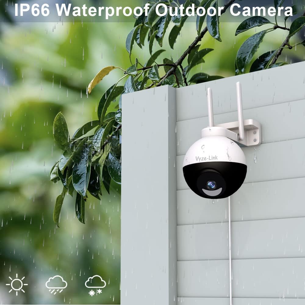 Acoperire de vizualizare 360° și rezoluție 2K: camera wireless de supraveghere WiFi pentru exterior poate fi rotită orizontal cu 355° și vertical cu 71° și acoperă un unghi de vizualizare de 110°, astfel încât să puteți vedea mai multe zone. Această cameră de supraveghere WiFi în aer liber vă oferă, de asemenea, o înregistrare video HD de 4MP, foarte clară. Sursa de alimentare de 5V este inclusă cu camera.
