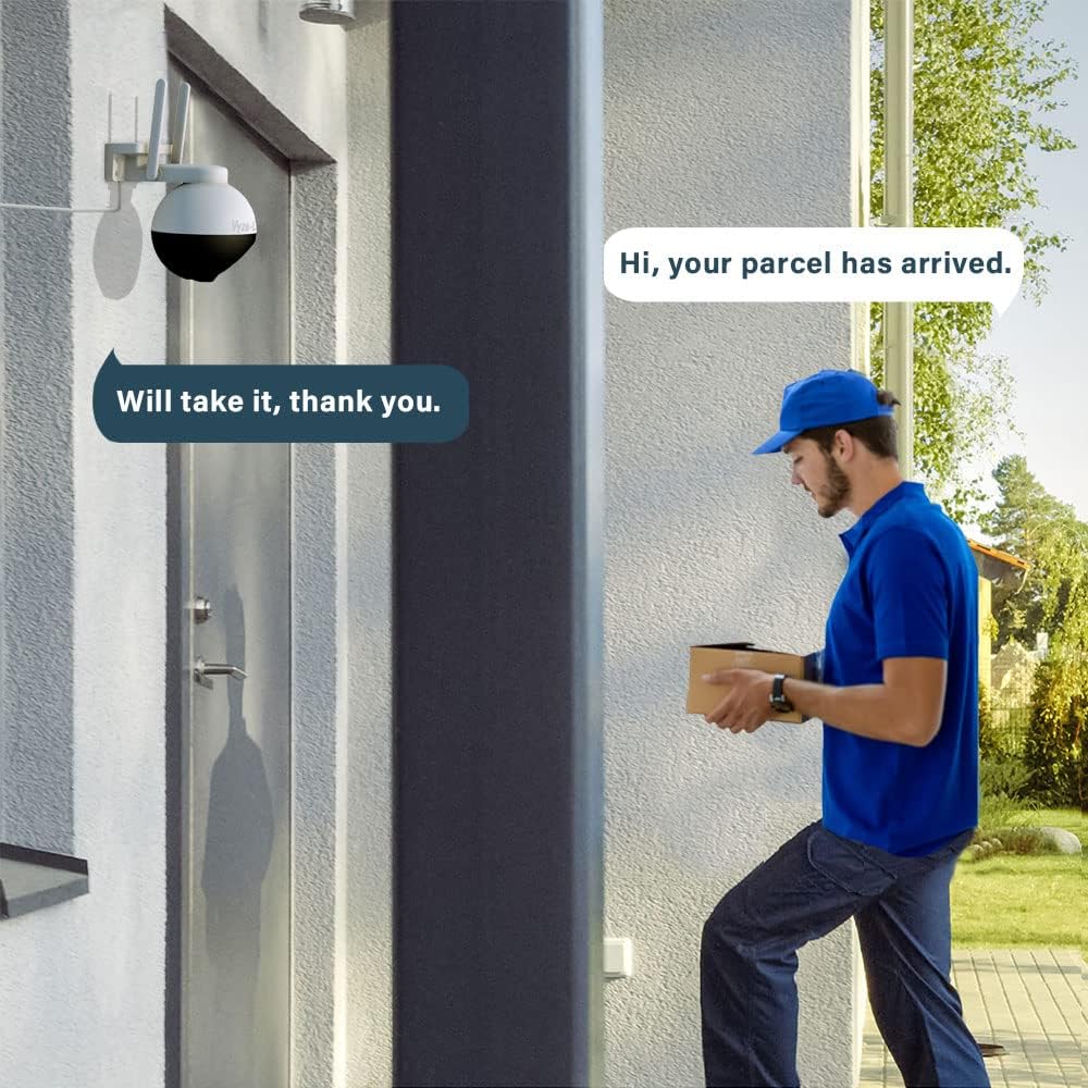 Această cameră de exterior rezistentă la apă este echipată cu microfon și difuzor, ceea ce vă permite să comunicați oricând cu oricine se află în fața camerei prin intermediul aplicației pentru telefon.