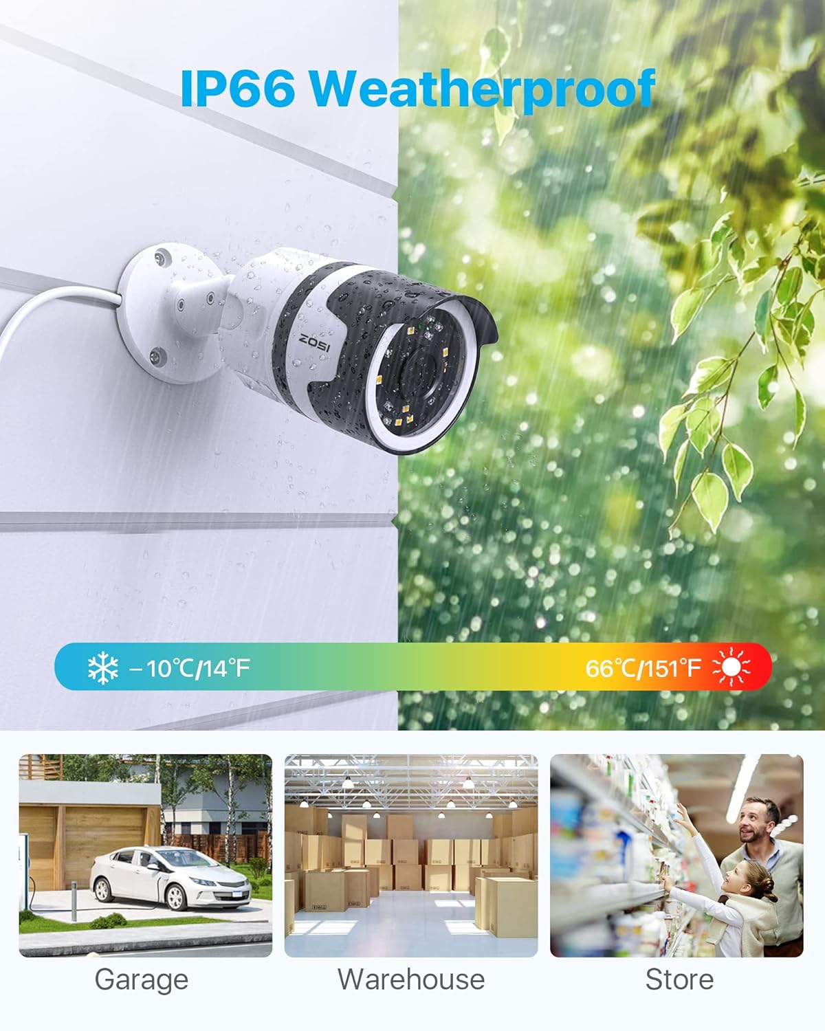 - Sistem 4K PoE NVR: Acest sistem de supraveghere PoE este format din 16CH 4K PoE NVR cu 8 camere IP PoE impermeabile de 5MP. Carcasa rezistenta la intemperii IP66 poate fi folosita in interior si exterior pentru casa, birou, magazin, hotel, magazin. Unitatea de disc de înaltă calitate de 3TB preinstalată în NVR protejează 24/7 zi și noapte.